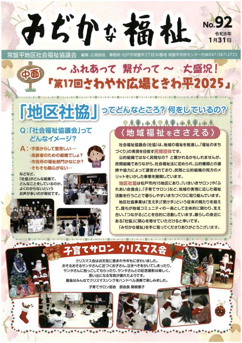 常盤平地区社会福祉協議会広報誌「みぢかな福祉」第92号が発行されました!