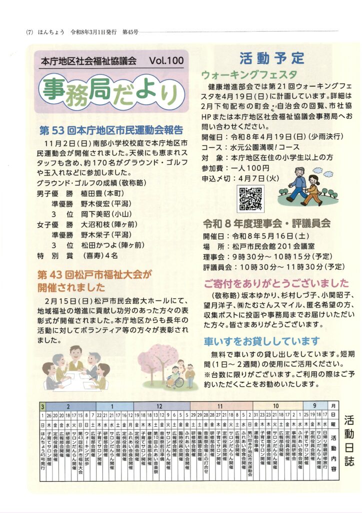 本庁地区社会福祉協議会広報紙『ほんちょう』Vol.45が発行されました!