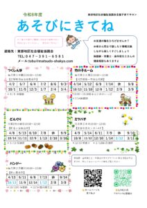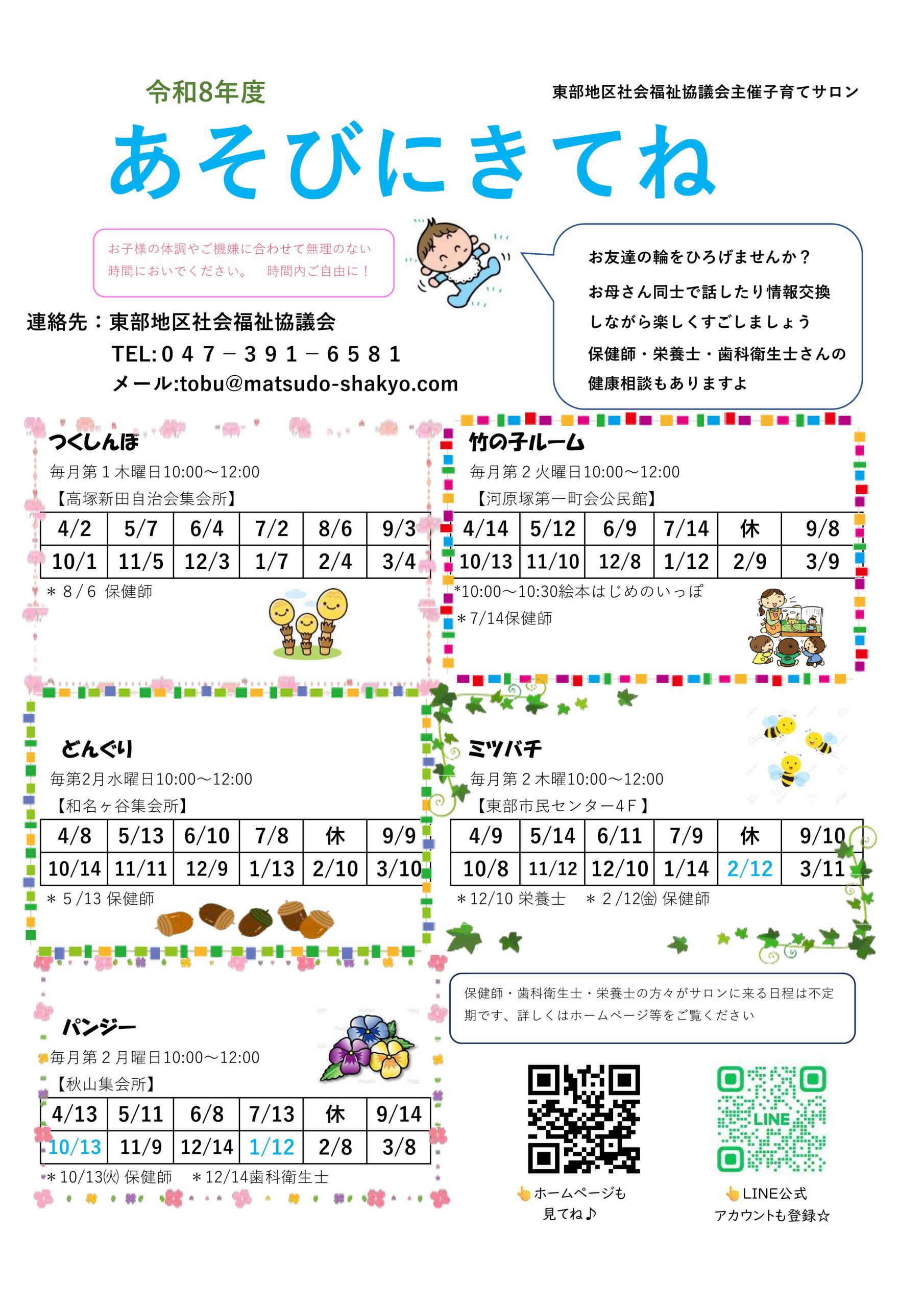 東部地区社会福祉協議会 令和8年度子育てサロン日程